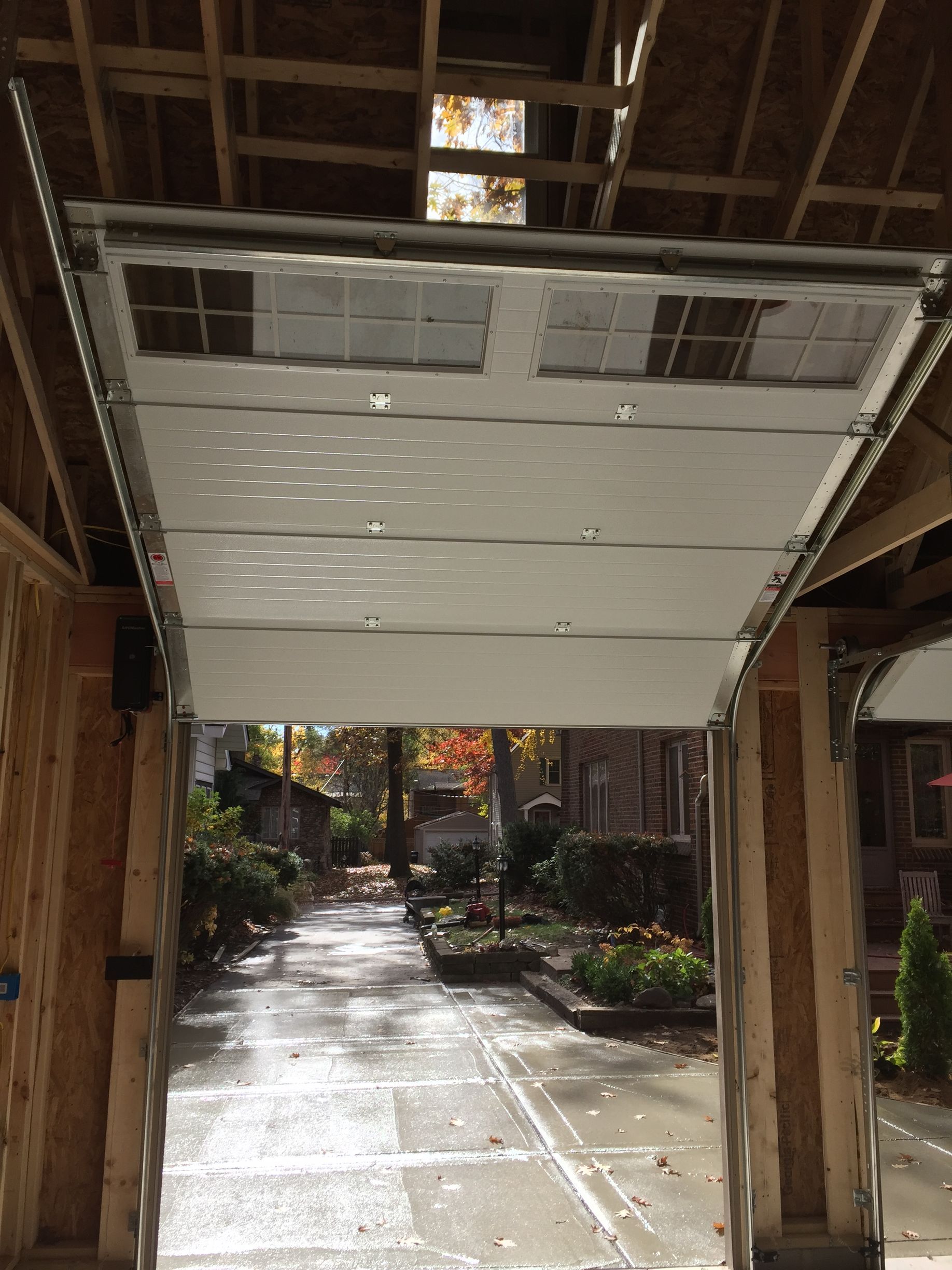 The overhead doors are by Richards Wilcox. We special ordered a specific track system that followed the pitch of the trusses so as not to take up too much valuable car lift space. The door is operated by a jackshaft opener by Liftmaster that mounted next to the track system on the front wall and out of the way.