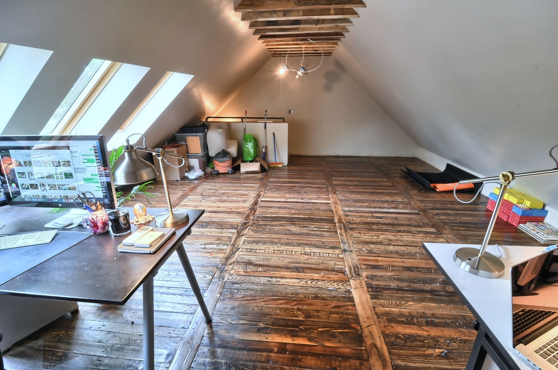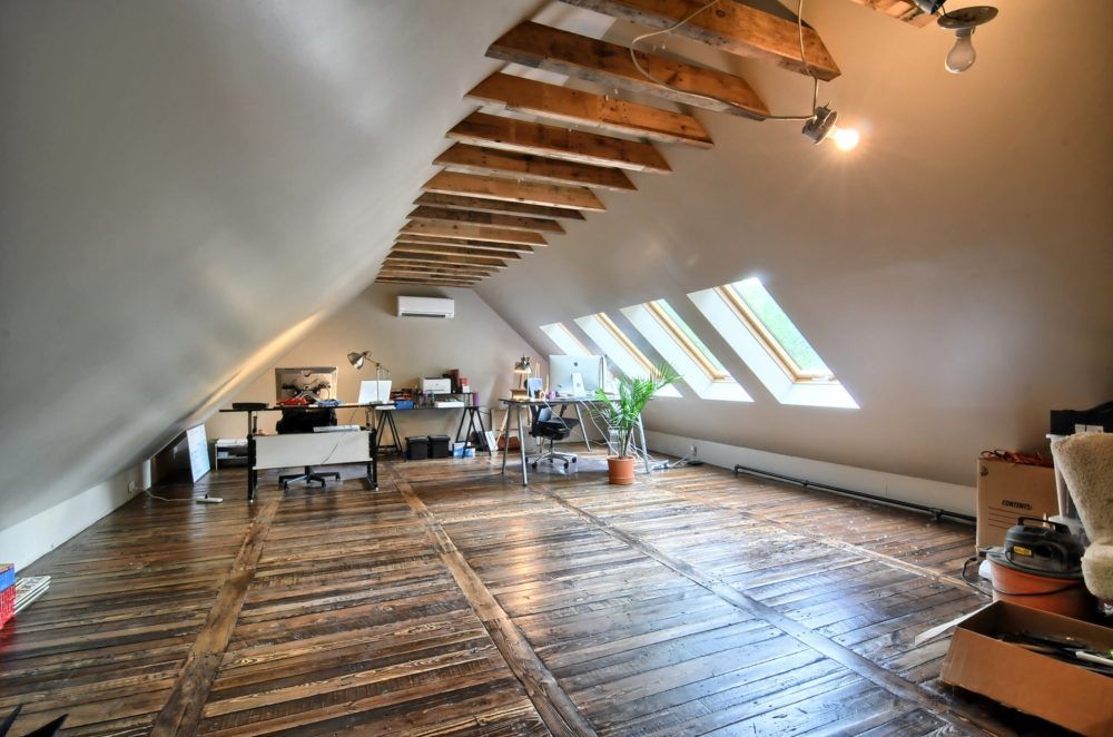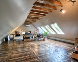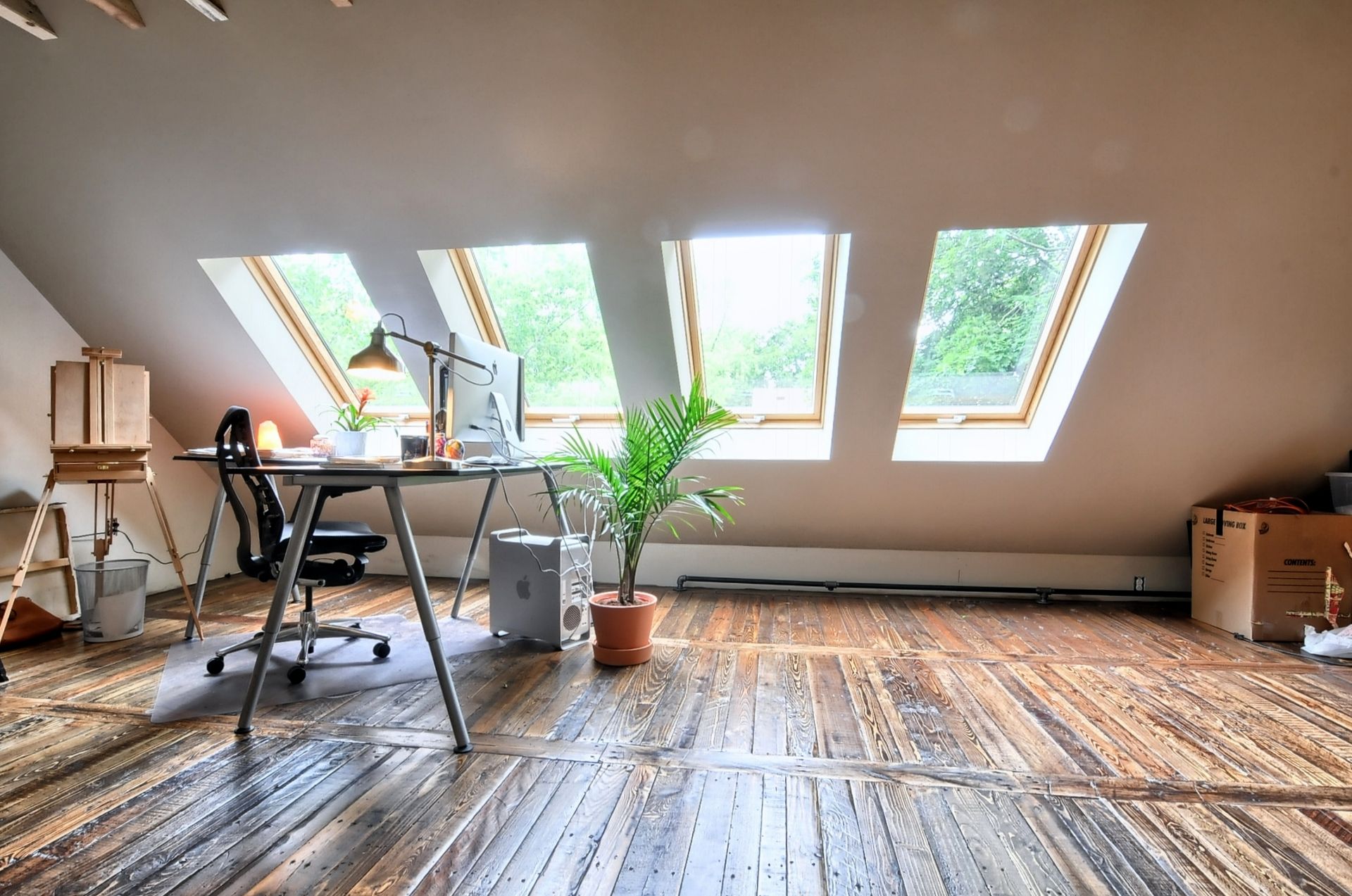 There were four Velux roof windows installed between the rafters. These windows are unique in that they can be opened at the bottom like a normal skylight, but they can also be brought down at the top. This allows the user to rotate the window 180 degrees for cleaning.
