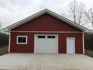 This garage has 10′ walls with 2″x 6″s. Standard web trusses were used for the roof