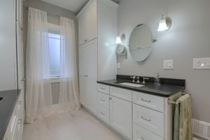 Finally, the master bath has his and hers vanities and pantries with quartz tops, heated floors (including in the walk-in shower) and a Schluter trough style drain.
