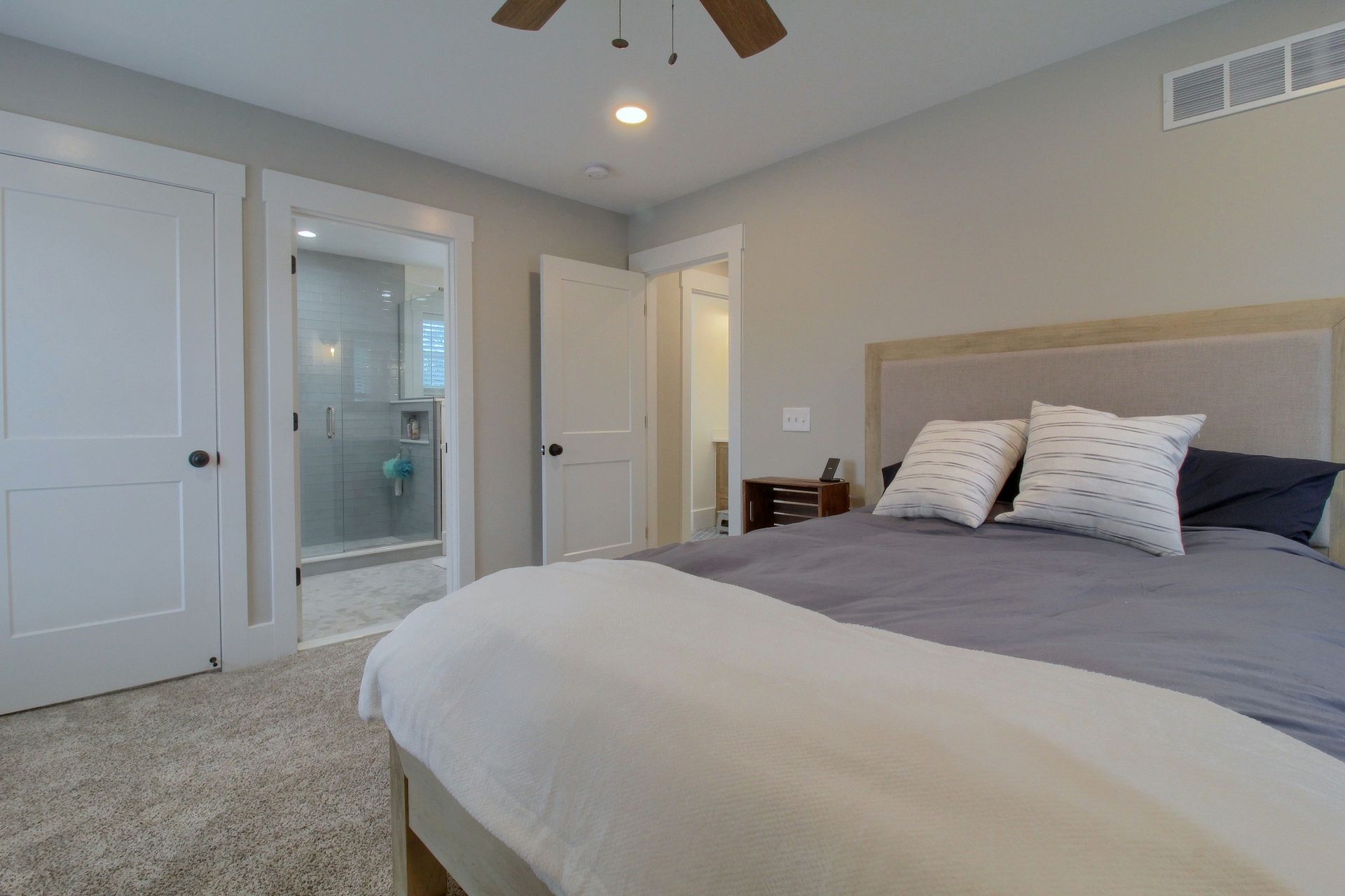 The exterior is James Hardie Dream Color Lap siding and trim boards to match the garage that was build previously.